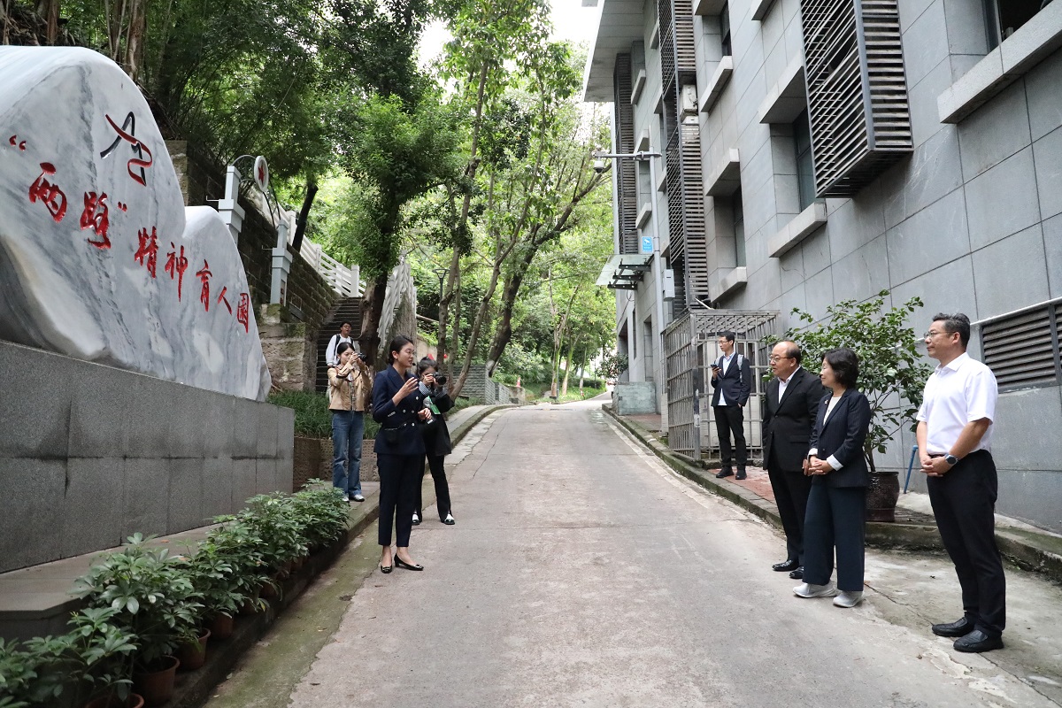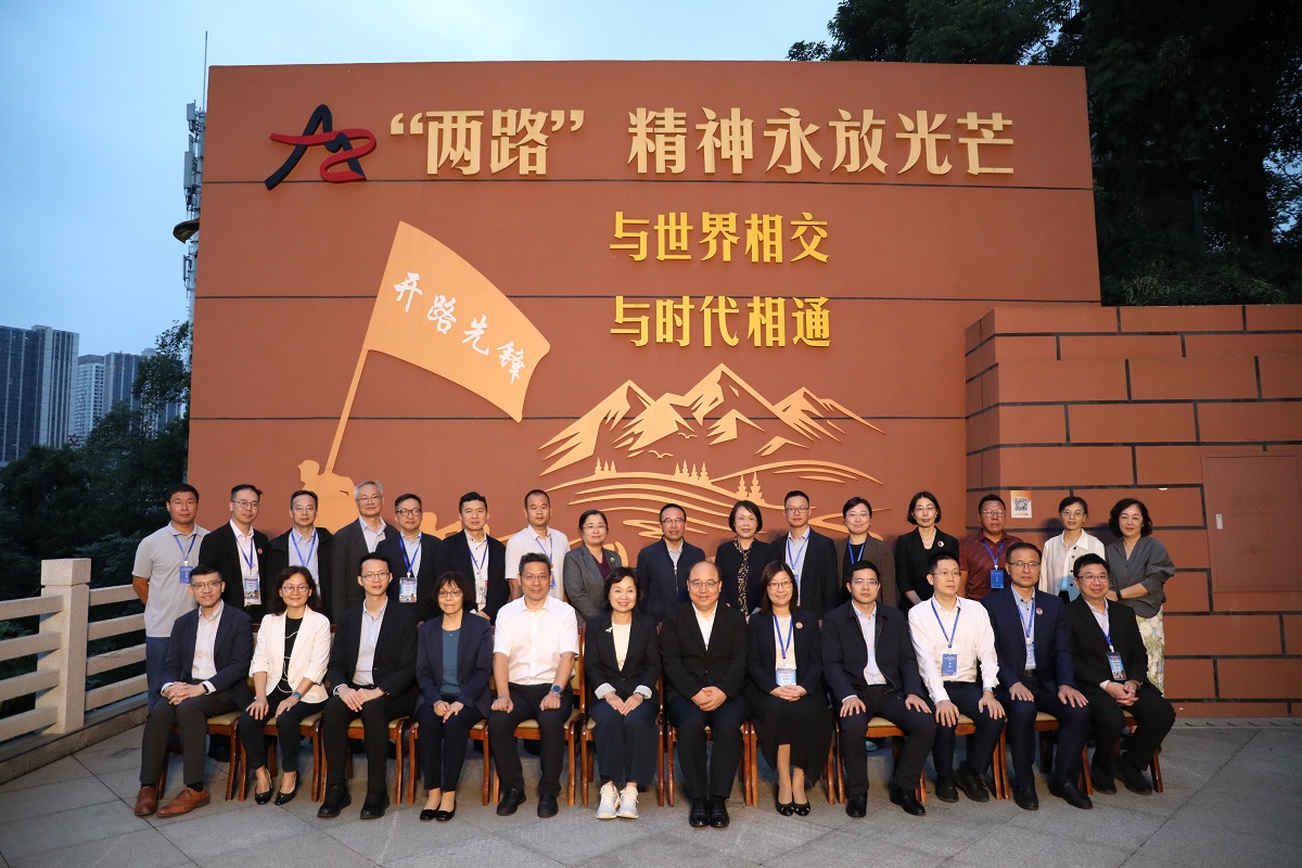 沿着重庆交通大学“两路”精神育人园的展陈脉络,蔡若莲局长一行切身感受了“两路”(川藏公路、青藏公路)建设历程的艰苦卓绝。通过珍贵的历史图片、实物展品与场景化讲解,代表团成员深刻体会到“两路”精神中无私奉献的家国情怀,对重庆交通大学以精神育人、助力国家交通事业发展的办学理念有了更为直观和深刻的认识。宫辉向香港代表团介绍,“两路”精神育人园不仅是交大人“逢山开路、遇水架桥”奋斗历程的历史积淀,更是交大人“感悟初心、奋发未来”的时代延续。蔡若莲局长表示,“两路”精神是兼具历史价值与时代意义的精神财富,可为两地青年交流搭建坚实的精神纽带。