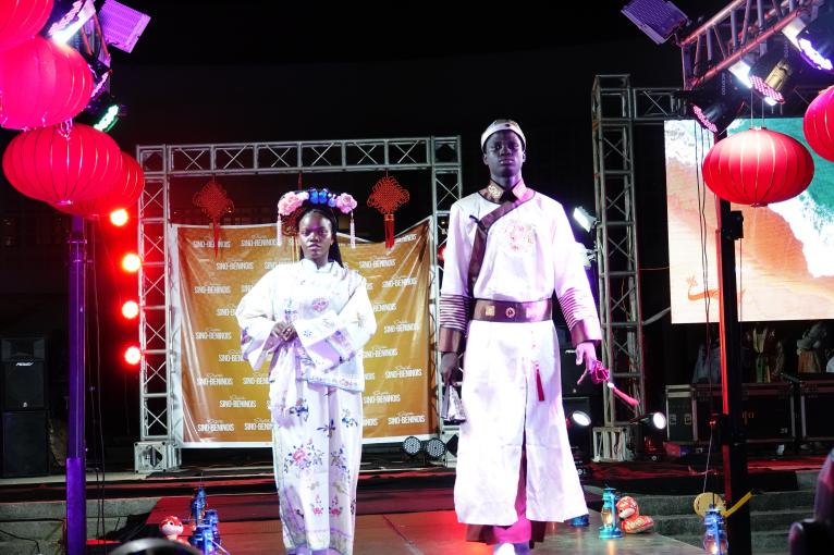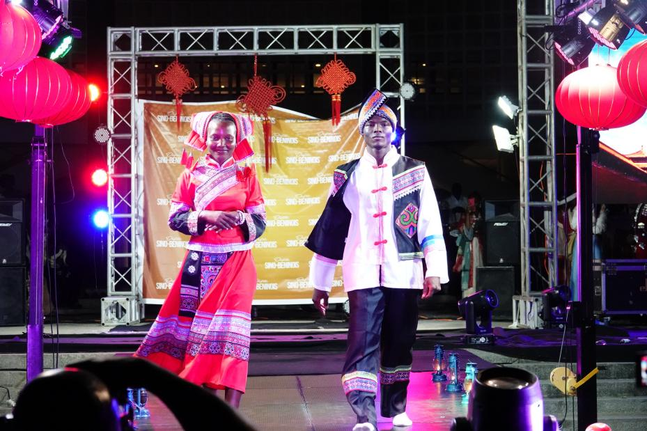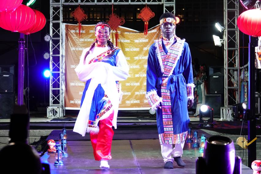 多彩民族:八组少数民族服饰接连登场,满族、朝鲜族、蒙古族、傣族、藏族等民族服装绚丽多彩。学生们在展示服装的同时跳起了各具特色的民族舞蹈,让贝宁观众领略到中华文化的多元与包容。