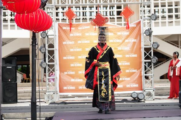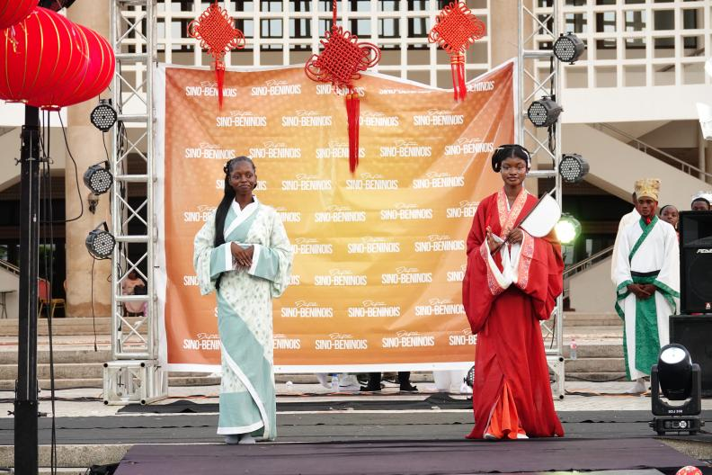 2025年11月8日,贝宁会议大厦中心广场华灯璀璨,由阿波美卡拉维大学孔子学院、贝宁中国文化中心联合主办的“中国贝宁服装秀”在这里隆重举行。中国驻贝宁大使张伟、使馆多位外交官,土耳其、卢森堡驻贝大使,贝宁时尚艺术界名流以及孔子学院师生等近800人齐聚一堂,共同欣赏这场文化盛宴。