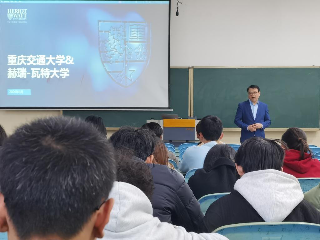 3月10日,重庆交通大学2026年英国赫瑞瓦特大学3+1本硕双学位项目宣讲会在南岸校区成功举办。英国赫瑞瓦特大学中国和东亚办公室首席代表王忠义和合作伙伴经理王子博两位老师亲临现场开展宣讲,会议采用线上线下相结合的形式,吸引近200名师生到场参与、在线聆听,现场氛围热烈有序。