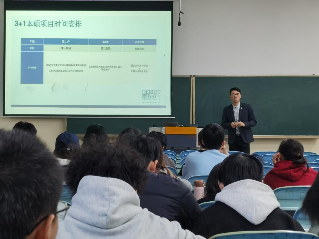 本次宣讲的3+1本硕双学位项目,是重庆交通大学与英国赫瑞瓦特大学本着优势互补、协同育人的原则,合作开展的联合培养项目。根据两校签订的合作备忘录,我校符合条件的学生在完成前三年本科阶段学习后,可赴英国赫瑞瓦特大学开展为期一年的硕士阶段学习。学生顺利完成双方规定的学业要求后,将同时获得重庆交通大学本科学历学位证书和英国赫瑞瓦特大学硕士学位证书。