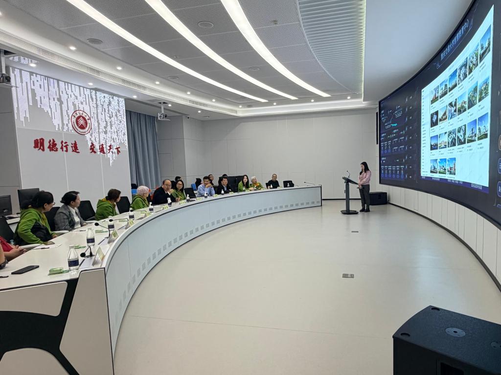 为进一步深化交流、凝聚合作共识,王满霞会长一行还与学校国际处、国际教育学院、旅游与传媒学院相关负责人及教师代表,在明德楼310会议室举行座谈交流,双方围绕国际中文教育推广、汉语教学合作、跨文化交流互鉴等核心议题展开深入探讨。座谈会上,国际处副处长徐厚智详细介绍了学校的办学概况和国际合作交流概况。国际教育学院院长余元玲围绕来华留学生教育体系建设、国际化人才培养模式创新,以及学校服务“一带一路”倡议的实践探索作了介绍。旅游与传媒学院汉语言文化系主任沈林则具体分享了我校汉语国际教育专业的办学特色、课程体系设置、海外中文师资培养等方面的实践经验与显著成效。王满霞会长对我校在国际中文教育领域取得的成绩给予充分肯定,对学校在来华留学生培养、汉语国际推广等方面的创新举措和务实作为予以高度评价。